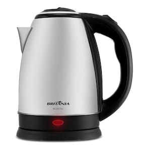 Chaleira Elétrica Britânia com capacidade de 1,8 litros, corpo em aço inox, desligamento automático, base rotativa 360° e jarra sem fio.Características