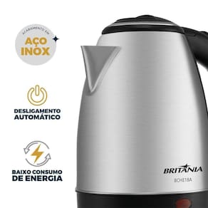 Com a Chaleira Elétrica Britânia BCHE18A, sua rotina ganha velocidade e sofisticação. Rápida, segura e adaptável a qualquer estilo de vida, ela é o toque final que faltava na sua cozinha. Garanta a sua agora e desfrute de praticidade que aquece o dia inteiro!