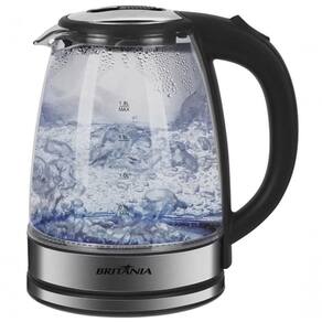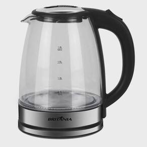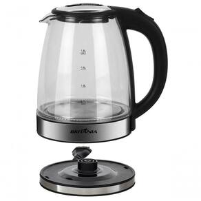 Chaleira elétrica Britânia com capacidade de 1.8L, potência de 1500W, jarra de vidro, desligamento automático, sistema Light Control e base destacável com porta-fio.Características