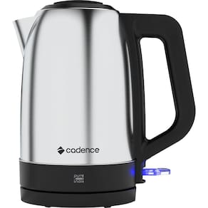 Ferve rapidinho para você aproveitar sem pressa. O charme e a praticidade se uniram pra tomar um chazinho. A gente nunca sabe quando vai precisar daquele chá relaxante ou daquele café energizam-te. Quando bate à vontade, não precisa perder tempo. A Chaleira Elétrica Pure Inox Cadence ferve a água rapidinho e dá um toque super contemporâneo para sua cozinha. Para preparar uma bebida quente ou agilizar o preparo de sopas e receitas, é a sua parceira de todas as horas para simplificar seu dia a dia. Base antiderrapante: Segurança e estabilidade. Indicador luminoso: Praticidade e modernidade. Desligamento automático: Segurança e tranquilidade. Acabamento em Inox: Alta durabilidade, fácil de limpar e sempre bonita. Proteção Anti-dry: Segurança contra superaquecimento Menos de 1kg: Leve e fácil de usar. Porta fio: Sem bagunça na bancada. 1 ano de garantia: Compromisso Cadence com a sua satisfação. Menos tempo pra ferver a água, mais tempo pra você. 1,7L Ferver de 500ml a 1,7L Até 1850W água fervida em poucos minutos. Tempo aproximado de fervura*: 127V min – 7 min e 40s 127V max – 2 min e 40s 220V min – 5 min e 20s 220V max – 2 min e 30s Dica de uso: Antes de utilizar sua chaleira elétrica pela primeira vez, ferva uma boa quantidade de água e jogue-a fora para eliminar possíveis resíduos. Faça esse procedimento duas vezes para garantir melhor resultado. E nunca prepare chás, cafés ou outras bebidas diretamente dentro da chaleira.