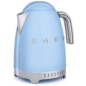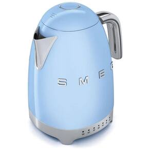 Chaleira elétrica Smeg com capacidade de 1.7L, desligamento automático, base giratória 360°, filtro removível de aço inoxidável e alarme acústico.Características
