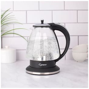Chaleira elétrica com corpo em vidro resistente ao calor e acabamento em cromo polido. Possui capacidade de 1,4 litro, alça de toque frio, sistema de desligamento automático e proteção contra funcionamento a seco. Ideal para aquecimento de água em uso doméstico.Acessórios