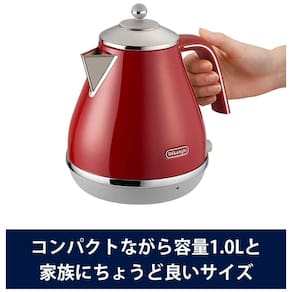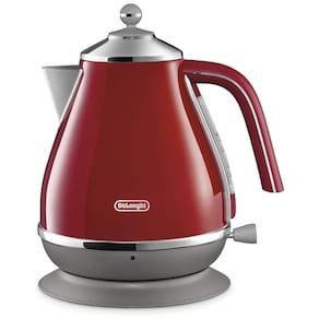 Chaleira Elétrica DeLonghi com capacidade de 1,2 litros, potência de 1200W, design moderno e eficiente, base giratória e alça ergonômica.Características