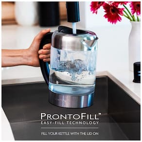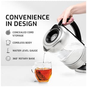 Chaleira Elétrica Ovente 1.7L, 1500W, ferve em 7 minutos, design moderno com LED azul, desligamento automático e proteção contra fervura a seco.Características