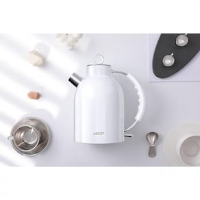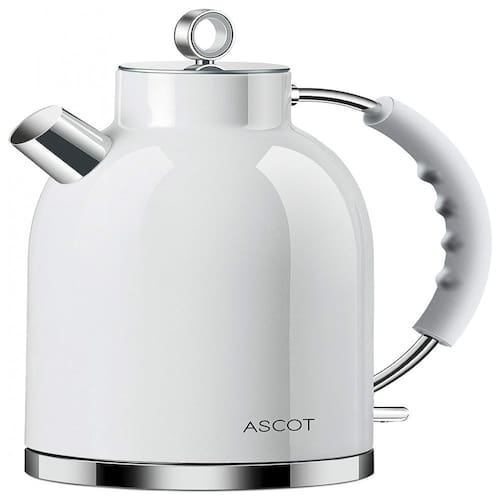 Chaleira elétrica ASCOT com design exclusivo, feita de aço inoxidável 304, aquecimento rápido, desligamento automático e proteção contra fervura a seco.Características