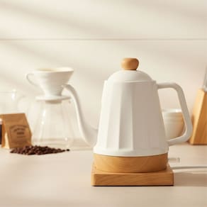 Chaleira elétrica com design sofisticado e acabamento perolizado. Possui cabo de bambu para um toque natural e confortável. Capacidade de 1,2 litros, ideal para bebidas quentes. Linha Elegance.Acompanha copo