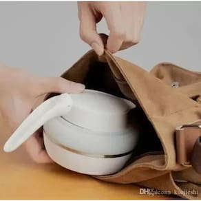 Chaleira elétrica portátil e dobrável, feita de silicone de qualidade alimentar e aço inoxidável. Fervura rápida em 5 minutos com desligamento automático. Design compacto para viagens e camping.Acessórios