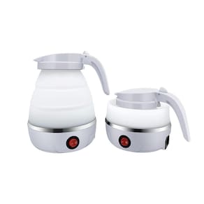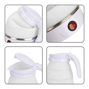 Chaleira elétrica dobrável com jarra e bule em silicone. Potência de 600W e capacidade de 600ml. Voltagem 110V. Design portátil e compacto para fácil armazenamento.Acessórios