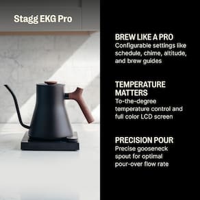 - Chaleira elétrica STAGG EKG PRO: uma evolução revolucionária para nossa chaleira exclusiva. Com configurações de preparação totalmente personalizáveis, controle de temperatura e vazamento de precisão e acesso a atualizações de firmware por WiFi, é hora de se tornar profissional.