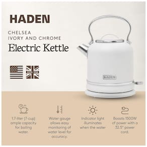 Chaleira elétrica Haden Chelsea inox 1,7L marfim e cromo com base 360° e desligamento automático, 1500W, 110V