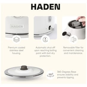 Chaleira elétrica com estrutura em aço inoxidável pintado com detalhes cromados, base com conexão 360°, resistência interna, desligamento automático ao atingir ebulição, proteção contra fervura a seco, visor de nível de água, termômetro analógico frontal, filtro de água removível, alça plástica e bico vertedor.Acessórios