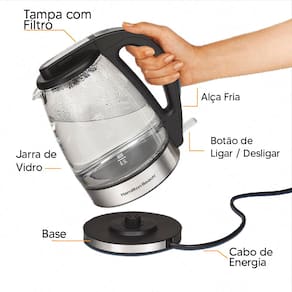 Chaleira Elétrica em Vidro da Hamilton Beach, uma combinação perfeita de elegância e funcionalidade. Com seu design sofisticado em vidro, esta chaleira não só prepara suas bebidas quentes favoritas em minutos, mas também adiciona um toque de estilo à sua cozinha.