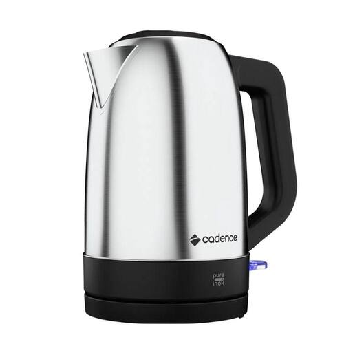 A gente nunca sabe quando vai precisar daquele chá relaxante ou daquele café energizante. Quando bate a vontade, não precisa perder tempo.A Chaleira Elétrica Pure Inox Cadence ferve a água rapidinho e dá um toque super contemporâneo pra sua cozinha.Para preparar uma bebida quente ou agilizar o preparo de sopas e receitas, é a sua parceira de todas as horas para simplificar seu dia a dia.Proteção Anti-dry: Segurança contra superaquecimento Menos de 1 kg: Leve e fácil de usar Porta fio: Sem bagunça na bancada 1 Ano de garantia: Compromisso Cadence com a sua satisfaçãoDica: Antes de utilizar sua chaleira elétrica pela primeira vez,ferva uma boa quantidade de água e jogue-a fora para eliminar possíveis resíduos.Faça esse procedimento duas vezes pára garantir melhor resultado. E nunca prepare chás, cafés ou outras bebidas diretamente dentro da chaleira.Base Antiderrapante;Indicador Luminoso;Desligamento Automático;Acabamento em Inox;Ferve de 500ml a 1,7LTampa Removível e Fácil de LimparBico ServidorDesligamento AutomáticoCapacidade: 1,7LAlça Isotérmica ErgonômicaIndicador LuminosoPorta Fio na BaseEspecificações TécnicasLargura: 14 CMAltura: 25 CMProfundidade: 22 CM127V - 1200W / 220V - 1850WConsumo: 127 V - 1,2 kW/h / 220 V - 1,85 kW/hPeso: 0,74KgPotência: 127V - 1200W / 220V - 1850W