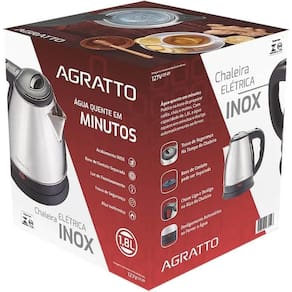 Fabricante: Agratto | Cor: Cromado | Material: Inox | Voltagem: 127V | Modelo: CE-01 | Fora De Linha: false | Capacidade: 1,8 litros | Múltiplo De Compra: 12,00 | Potência: 1000W