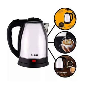 Chaleira elétrica com corpo em aço inox e plástico resistente. Capacidade de 1,8 litros. Possui desligamento automático após fervura e quando vazia, LED indicador de fervura, tampa com proteção isotérmica, base antiderrapante e design de base rotacional de 360 graus.Acessórios