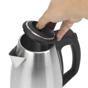 Chaleira elétrica portátil com corpo em aço inoxidável, elemento de aquecimento oculto e botão liga/desliga com luz indicadora. Formato elegante e prático para o dia a dia, com velocidade em aquecer água.Acessórios