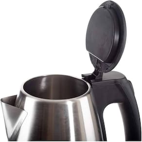 Chaleira elétrica portátil em inox com capacidade de 1,8 litros, ideal para escritórios ou uso em casa. Possui corpo de aço inoxidável, elemento de aquecimento oculto, botão de liga/desliga com luz indicadora, cabo de toque frio, proteção para não ferver a seco e desligamento automático ao atingir a fervura.Características