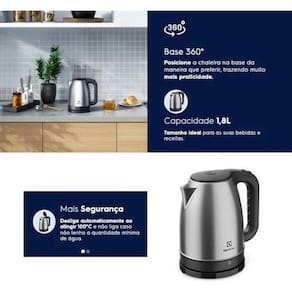 - A Chaleira Elétrica Electrolux Experience proporciona um toque moderno à sua cozinha, enquanto sua tecnologia torna sua rotina mais prática e eficiente.