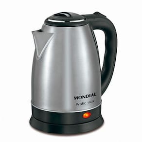 Chaleira Eletrica pratica e com acabamento em aco inox, aquece e prepara de forma rapida e silenciosa cafes, chas, chimarrao, sopas, macarrao e outros alimentos, alem de esterilizar as loucas.