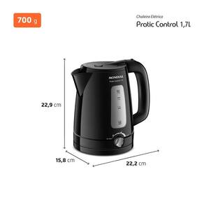 Filtro removívelA Chaleira Elétrica Mondial Pratic Control CE-17-BC foi desenvolvida para quem busca precisão, rapidez e praticidade no preparo de bebidas e receitas. Com controle de temperatura ajustável até 100C, permite selecionar o ponto ideal para cada necessidade: 70C para chimarrão e café coado, 40C para preparo de fórmulas infantis ou até fervura total para chás e outras bebidas.
