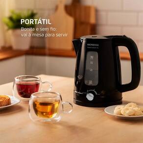 Com capacidade de 1,7 litros, prepara até 7 xícaras de chá de uma única vez. O sistema de aquecimento rápido reduz o tempo de espera e otimiza o consumo de energia. Seu design moderno com jarra destacável permite levar diretamente à mesa para servir com mais praticidade.