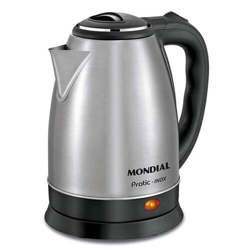 Prática, moderna e segura, a Chaleira Elétrica Pratic Inox da Mondial é ideal para você aquecer água a 100ºC em poucos minutos. Perfeita para o preparo de chás, café, chimarrão ou sopas instantâneas, com grande capacidade de 2L. Com jarra removível da base, esta chaleira possui filtro, botão para abertura automática da tampa e alça. Sua função de desligamento automático ao ferver a água, proporciona segurança e economia de energia. A Chaleira da Mondial é a escolha certa para garantir praticidade e segurança à sua cozinha. Características: - Design moderno em aço inox - Desligamento automático - Ferve água rapidamente a 100ºC - Jarra removível (sem fio) Especificações técnicas Marca: Mondial Modelo: Pratic Inox Cor: Cinza e preto Material: PP e Aço Inox Capacidade: 2L Potência: 1200W Voltagem: 220V Dimensões: 23 x 22 x 15 cm Peso aproximado: 0,75Kg Sobre a Mondial A Mondial é uma empresa brasileira com unidades de negócio em mais de 20 países que oferece uma linha completa de produtos, com destaque para o design moderno, qualidade e preço adequado. A Mondial possui mais de 1400 postos de assistência técnica, com atendimento em todos os estados brasileiros. Atenção: Deixe o produto esfriar antes de limpar. Certifique-se de que o produto está desligado da tomada.