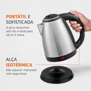 Conta com desligamento automático, alça isotérmica, jarra sem fio removível e tampa abre-fácil, garantindo conforto e segurança no manuseio. Além disso, o design sofisticado em aço inox valoriza sua cozinha e deixa a hora do café muito mais elegante.