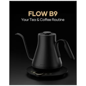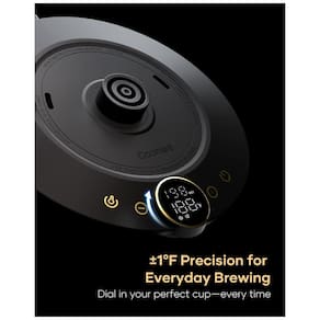Chaleira elétrica com bico pescoço de ganso, controle eletrônico de temperatura, display digital e função manter aquecido por até 1 hora. Corpo em aço inoxidável com acabamento preto fosco. Base com desligamento automático, proteção contra superaquecimento e fervura a seco.Acessórios