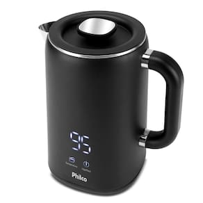 Chaleira Elétrica Philco PCH18B Painel Digital 1,8L, esta chaleira elétrica é perfeita para quem busca funcionalidade no dia a dia. Possui painel digital touch com indicação de temperatura e quatro opções pré-programadas -45°C, 55°C, 70°C e 85°C-, além da função ferver. A tecnologia Boil Dry garante mais segurança ao impedir o funcionamento sem água, enquanto o acabamento interno duplo reduz o calor externo.