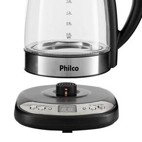 Chaleira Elétrica Philco PCHD 1,7L Digital Glass 110v Com a Chaleira Digital Philco Glass PCHD 1,7L você consegue preparar chás, chimarrão, café instantâneo e muitas outras bebidas quentes de forma prática e eficiente Ela tem capacidade para até 1,7 litros de água fervida, além de fazer isso com rapidez. Também conta com desligamento automático, isso é, quando a água começar a ferver ela desliga sozinha.