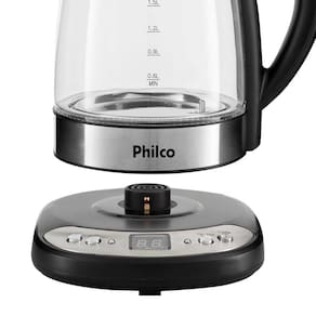 Chaleira Elétrica Philco PCHD 1,7L Digital Glass 220v Com a Chaleira Digital Philco Glass PCHD 1,7L você consegue preparar chás, chimarrão, café instantâneo e muitas outras bebidas quentes de forma prática e eficiente Ela tem capacidade para até 1,7 litros de água fervida, além de fazer isso com rapidez. Também conta com desligamento automático, isso é, quando a água começar a ferver ela desliga sozinha.