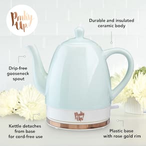 Pinky Up Noelle Chaleira elétrica de cerâmica pescoço de ganso de 1,5 L com controle de temperatura - Design sem fio para panela de água fervente, menta, ouro rosa