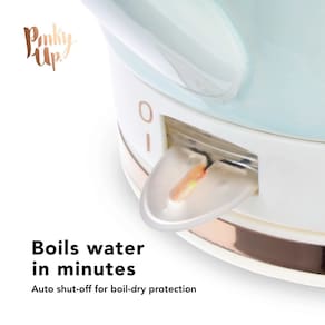 - Elegante e chique – a chaleira elétrica de cerâmica Noelle possui um vidro de cerâmica menta brilhante e uma base metálica em ouro rosa moderno. Com uma estrutura totalmente cerâmica, sua água nunca é contaminada por plásticos e outros materiais perfumados.