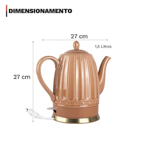 Distribuído por feheros shop Chaleira elétrica porcelana elegance salmão 1,5l base 360 desligamento automático Atenção Esta chaleira elétrica é feita em porcelana, material mais delicado e sofisticado que o inox ou o plástico. Portanto, embora elegante, requer mais cuidado durante o manuseio. Nunca utilize diretamente no fogão ou forno. Produto exclusivo para uso com a base elétrica que acompanha. A chaleira possui desligamento automático ao atingir o ponto de fervura, evitando superaquecimento, mas deve ser sempre Utilizado com água no interior, respeitando o nível mínimo e máximo indicado. Evite quedas, choques térmicos ou batidas. - leia atentamente a descrição e siga o passo a passo que o fabricante recomenda. Informações do produto A chaleira elétrica porcelana elegance salmão vai transformar sua rotina com elegância e eficiência com design clássico e acabamento em porcelana na sofisticada cor salmão, ela une praticidade, charme e segurança para aquecer água de forma rápida. Ideal para quem aprecia bebidas quentes com estilo, como chás, cafés e infusões, ou precisa de água quente com agilidade no dia a dia. A capacidade de 1,5 litros é perfeita para atender toda a família. Conta com base giratória 360, desligamento automático e proteção contra superaquecimento, tornando seu uso seguro e cômodo. É uma peça que além de funcional, valoriza a decoração da sua cozinha. Especificações técnicas - capacidade de 1,5l, ideal para preparo de bebidas ou uso culinário no dia a dia - fabricada em porcelana de alta qualidade, resistente ao calor e com acabamento brilhante e elegante - bico antigotejamento, que evita derramamentos e facilita o uso com mais segurança - base giratória 360 removível, proporcionando mais praticidade para destros e canhotos - desligamento automático ao atingir a fervura da água, evitando riscos de superaquecimento - botão liga/desliga com luz indicadora de funcionamento - design decorativo em porcelana salmão, elegante e funcional - mais eficiente que o micro-ondas e mais segura que as chaleiras de fogão Ficha técnica do produto - capacidade: 1,5 litros - altura com base: 27 cm - largura: 27 cm com alça - diâmetro da base: 16,5 cm - peso: 0,950 kg - material da chaleira: porcelana - material da base: polipropileno com componentes elétricos - frequência: 60 hz - cabo: 80 cm - cor: salmão - desligamento automático - base giratória 360 Antes e depois do primeiro uso - antes de utilizar, verifique se a voltagem da chaleira é compatível com sua tomada. Para a primeira utilização, ferva água uma vez e descarte o conteúdo, eliminando possíveis resíduos de fábrica. Se necessário, repita o processo. - após o uso, aguarde a chaleira esfriar totalmente antes de lavar. Faça a limpeza com esponja macia e sabão neutro. Evite molhar a base elétrica ou utilizar produtos abrasivos. Itens inclusos no pacote - 01 chaleira elétrica de porcelana elegance salmão 1,5 litros - 01 base elétrica com rotação 360 - 01 manual de instruções Todas as fotos são reais dos produtos. Qualquer dúvida, estamos à sua disposição Dúvidas frequentes 01 - a chaleira é 100% de porcelana R: sim. O corpo da chaleira é feito inteiramente em porcelana de alta qualidade, com visual refinado. 02 - pode ser Utilizado no fogão ou micro-ondas R: não. O uso deve ser feito exclusivamente com a base elétrica que acompanha o produto. Não utilize em fogo direto, forno ou micro-ondas. 04 - como acompanhar o envio do produto R: após a postagem, você poderá acompanhar todas as etapas da entrega por meio do código de rastreamento disponibilizado na sua conta.