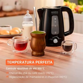 Controle de temperatura ajustável até 100 °C, atinge 70 °C para chimarrão/chá/café e 40 °C para higienização de mamadeiras. Capacidade de 1,7 L (até 7 xícaras). Visor transparente. Sistema de aquecimento rápido. Filtro removível. Jarra destacável. Tampa Abre-Fácil. Botão ON/OFF. Desligamento Automático. Porta-fio., Controle de temperatura ajustável até 100 °C, atinge 70 °C para chimarrão/chá/café e 40 °C para higienização de mamadeiras. Capacidade de 1,7 L (até 7 xícaras). Visor transparente. Sistema de aquecimento rápido. Filtro removível. Jarra destacável. Tampa Abre-Fácil. Botão ON/OFF. Desligamento Automático. Porta-fio.Acessórios