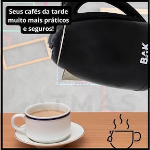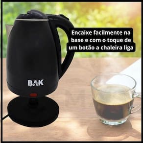 Chaleira elétrica preta1,8 l - 1100w - 127vA jarra elétrica de 1,8 litros é a escolha perfeita para quem busca praticidade e rapidez na hora de preparar bebidas quentes ou ferver água para limpeza. Com seu design moderno e elegante, ela é capaz de aquecer água em poucos minutos, além de contar com um sistema de desligamento automático que garante a segurança do usuário. Com capacidade para até 1,8 litros, é ideal para preparar chás, cafés e outras bebidas em grandes quantidades. Características Marca bakCapacidade de volume 1,8 lPotencia 1100wCor pretaMaterial inox Desligamento automático Tampa artticulada Trava de segurança Luz indicador liga/desligaRotação de 360Alça isotermica Voltagem 127v Conteudo da embalagem01 chaleira eletrica preta bak 127v Dimensões 17 x 21 x 20 cmPeso 600 gr