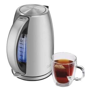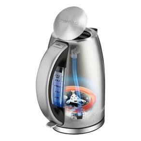Capacidade de 1,7 litros 1500 watts para aquecimento rápido Janela de água retroiluminada azul Conector sem fio giratório 360 Alça antiderrapante Elemento de aquecimento oculto para evitar o acúmulo de minerais Tampa de abertura fácil Acabamento elegante em aço inoxidável Filtro de escamas removível/limpável