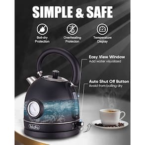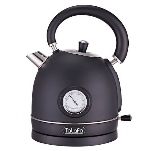 Chaleira elétrica para água fervente, chaleira elétrica Talafa 1,7L/1500W, caldeira de água quente de aço inoxidável 304 com termômetro, desligamento automático e proteção contra fervura a seco, fervura rápida, preto escuro - Chaleira de qualidade alimentar – chaleira elétrica Talafa estilosa feita de aço inoxidável 304 profissional de grau alimentício. Todas as peças de plástico que entram em contato com a água são livres de BPA. Esta chaleira elétrica para água fervente é perfeita para uso diário como chá, café e muito mais sem ter que se preocupar com ferrugem e desbotamento do metal ao longo do tempo. Fornecerá muitos anos de uso contínuo. - Caldeira de água de aquecimento rápido – chaleira elétrica de 1,7 l/1500 W ferve água em 8 minutos. O botão de um toque com um indicador de LED liga/desliga brilhante torna a operação simples, enquanto a base rotativa de 360 graus sem fio oferece fácil enchimento e colocação. - Despeje água com facilidade – A chaleira elétrica Talafa de design exclusivo para água fervente com cabo anti-escaldante permite que você use a caldeira de água com as mãos nuas sem risco de queimaduras. O bico redondo possui um filtro interior que garante que sua água esteja limpa enquanto a tampa separada permite despejar e encher facilmente. A janela de visualização fácil permite um enchimento conveniente até o nível necessário. - Exibição de temperatura e características de segurança – Com a chaleira elétrica Talafa para água fervente, é fácil ver a temperatura da água através do monitor, enquanto um mostrador termômetro embutido permite que você aqueça a água a uma temperatura adequada para chá e café saborosos. A caldeira de água elétrica tem proteção contra fervura e superaquecimento, juntamente com um desligamento automático, proporcionando máxima segurança enquanto a chaleira está operando sem supervisão. - Dicas de uso: mantenha fora do alcance de crianças. Tenha cuidado ao usar esta chaleira de aço inoxidável. Não toque na superfície da chaleira elétrica ou abra a tampa enquanto a caldeira de água estiver aquecendo a água. Não coloque as mãos no corpo da chaleira para limpar, você pode adicionar fatias de limão e aquecê-lo por 5 a 10 minutos para ajudar a chaleira a limpar.