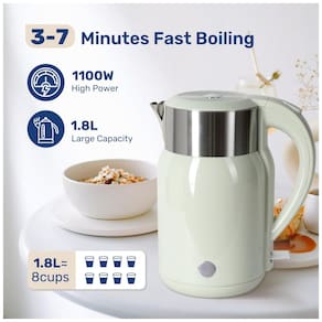 Chaleira elétrica YSSOA 1,8L verde menta sem fio 1100W com desligamento automático e proteção contra fervura a seco 110V