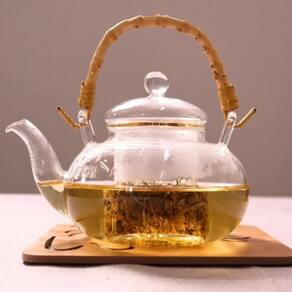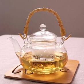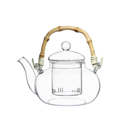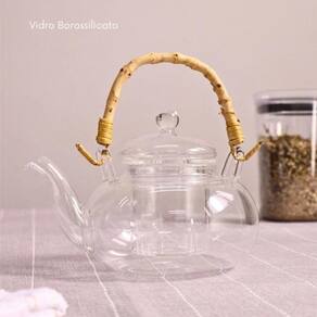 • 1 Chaleira em Vidro Borossilicato com Alça em Bambu 1 Infusor em Vidro Borossilicato