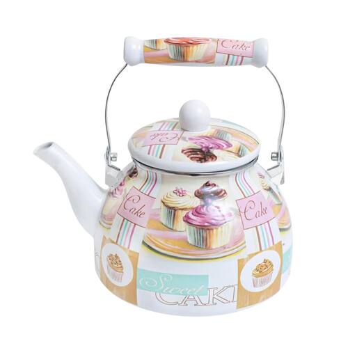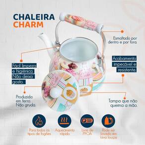 Chaleira Esmaltada Em Ferro Com Tampa e Cabo Em Porcelana Charm 2,5L Italy -