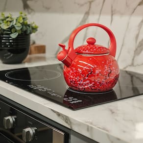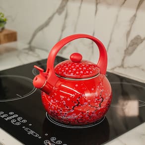 Chaleira Esmaltada Vintage 2,2L com Apito à Indução Vermelha