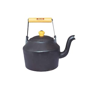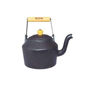 Chaleira de Ferro Fundido com alça de madeira com batoque de madeira e tampa de Ferro,