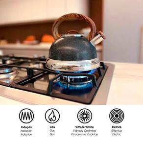 A Chaleira Brinox é indicada para todos os tipos de fogão, à gás, elétrico, vitro-cerâmico ou indução.