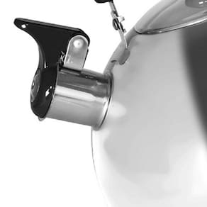 Feita em aço inox, essa chaleira possui capacidade de 2,5 litros, ideal para preparar chás, cafés e outras bebidas quentes. Além disso, conta com um apito que avisa quando a água está fervendo, evitando que ela transborde.