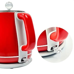 A chaleira é feita de plástico de alta resistência com detalhes em aço inoxidável, garantindo durabilidade e estilo.