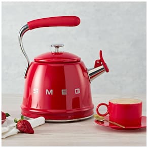 Design retrô inspirado no vintage, capacidade de 2,4L (10 xícaras), compatível com vários tipos de fogões, incluindo indução, apito fixo de único tom com bico sem gotejamento, base espessa para aquecimento uniforme, alça ergonômica e antiderrapante, tampa de bico de fácil abertura, tampa removível para limpeza fácil, marcador de nível de água e revestimento de alça de silicone resistente ao calor.Vendido e entregue por Ecletiq
