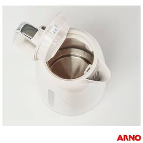 Chaleira Soleil Arno com Capacidade de 1,7L Marfim - SKET Sua cozinha com mais estiloA Chaleira Soleil da Arno tem um design e cor únicos que vão deixar sua cozinha ainda mais gostosa.A chaleira exclusiva da nova linha Soleil conta com dois visores laterais de nível de água e uma grande capacidade de 1,7L. Vem com acabamento cromado e base giratória 360 para auxiliar no manuseio. Além de um bico que serve com precisão e chave liga-desliga com indicador luminoso. Você imagina, clic, a Arno faz. CaracterísticasCapacidade: 1,7 LitrosDesligamento AutomáticoTrava na Tampa Especificações TécnicasModelo: SKETCor: MarfimMaterial: PlásticoPotência: 1500 W (110v)Voltagem: 110VEAN: 3045386382651 (110v)Garantia: 12 meses Dimensões e PesoDimensões do Produto sem Embalagem (AxLxP): 246x191x221 mmDimensões do Produto com Embalagem (AxLxP): 246x191x246 mmPeso do Produto sem Embalagem: 1,42 KgPeso do Produto com Embalagem: 1,52 Kg Itens Inclusos01 Chaleira Soleil,01 Manual de Instruções01 Certificado de Garantia Agente ValidadorProduto possui certificação de segurança compulsória, certificado pela UL-BR 20.0471 , organismo acreditado pela CGCRE do Inmetro.