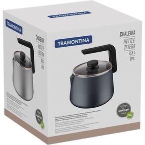 A Chaleira Off-White Tramontina com revestimento antiaderente Starflon Max deixará a higienização do item muito mais simples. Sem contar a espessura de 1,8mm que também proporciona agilidade para a fervura e distribuição proporcional do calor. Além disso, sua alça e pegador são produzidos em material antitérmico, trazendo mais conforto e segurança no momento de manuseio do item. Sua tampa de vidro temperado mantém a umidade dentro da chaleira, evitando a perda de líquidos nos momentos de fervura, apenas com uma saída de vapor no bico para circular o excesso. Características: Marca: Tramontina Linha: Chaleiras Cor: Cinza (Off-White) Material: Alumínio Material do Cabo: Baquelite Antitérmico Antiaderente: Sim Espessura: 1,8mm Capacidade: 2,4L Fogões Compatíveis: Gás, elétrico e vitrocerâmico Compatível com Lava-louças: Sim Possui Apito: Não Material da Tampa: Vidro Temperado Ean: 7891112300958