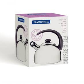 Modo de Uso: Para o bom funcionamento do apito, encha a chaleira somente até o início do bico. Para servir, remova o apito. Na tampa da sua nova chaleira existe uma pequena flecha estampada. Para evitar que a tampa caia, alinhe a seta com a parte traseira do cabo antes de servir. Centralize bem a chaleira sobre a chama para evitar que os componentes sejam danificados. Para manter sua peça bonita recomenda-se lavar somente com detergente e esponja. Depois da lavagem, sempre que possível, enxágue o produto com água quente e seque-o imediatamente, para que se mantenha com o brilho , pois o cloro e as substâncias contidas na água podem deixar manchas. Usando a máquina de lavar, recomendamos retirá-la logo que tenha terminado o ciclo ''enxaguar'', a fim de que a mesma seja secada manualmente.